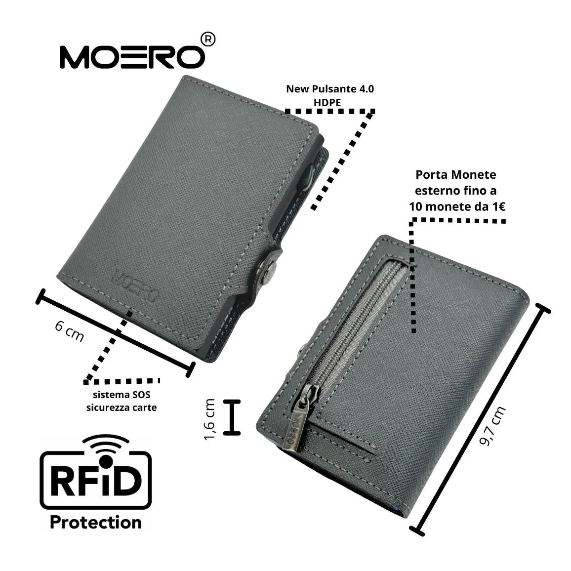 Misure 9,7 x 6 x 1,6 Protezione RFID per carte contactless.