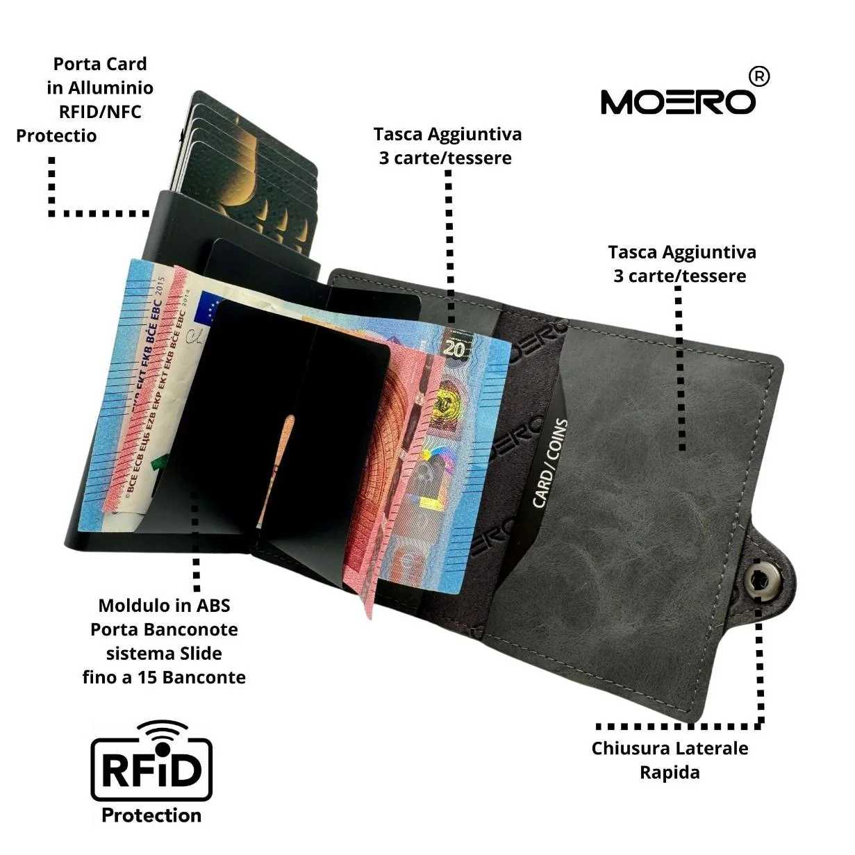 Contiene fino a 12 Carte, 5/6 nel portacarte e 6 divise nelle due tasche interne.